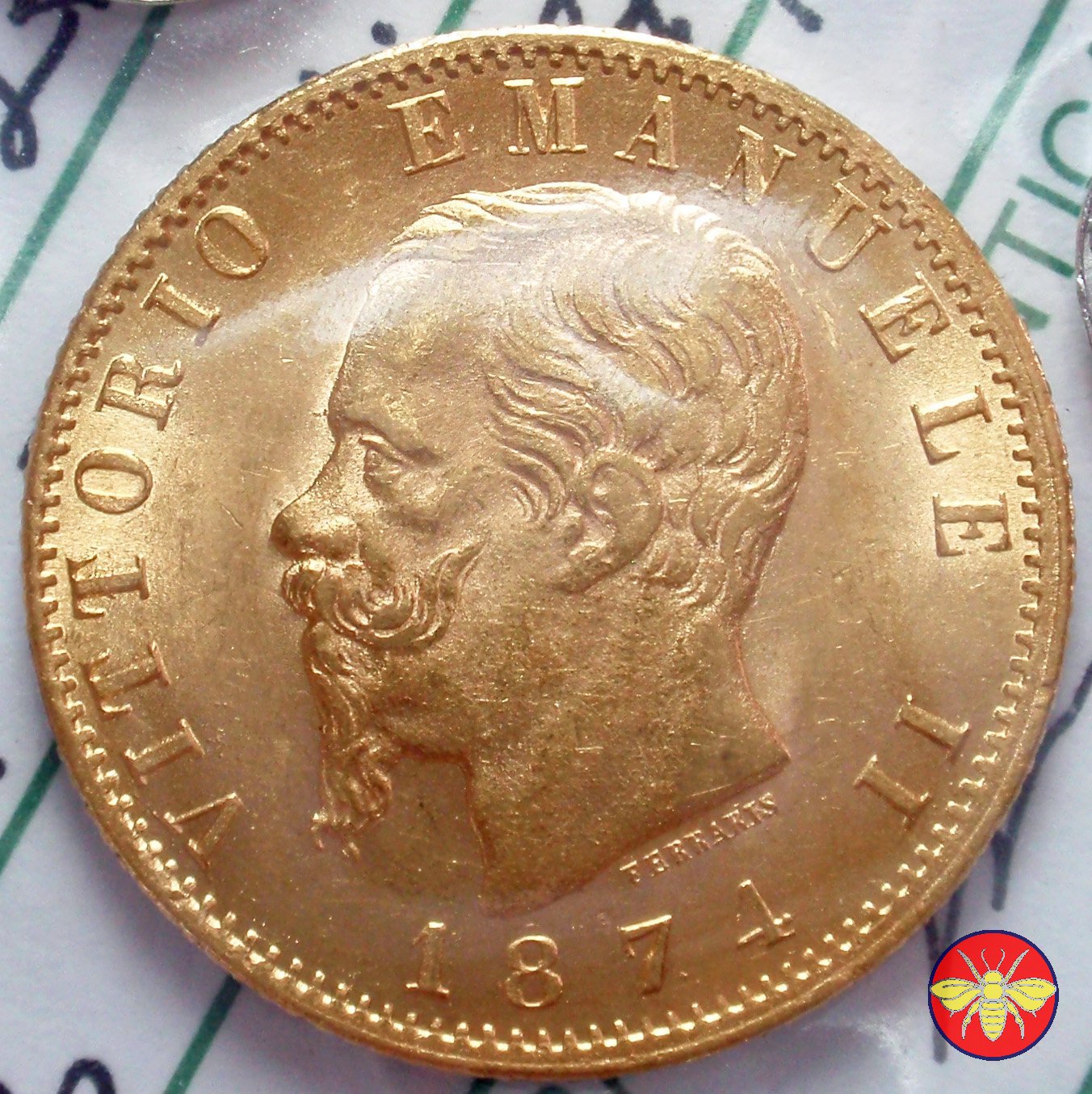116 20 lire Vitt. Emanuele II Regno d'Italia 1861/78 (1874 - Milano)