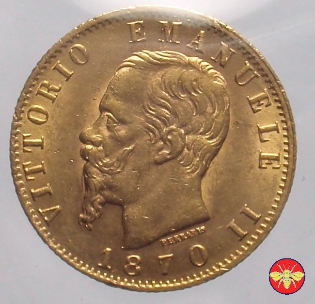 133 20 lire Vitt. Emanuele II Regno d'Italia 1861/78 (1870 - Torino)