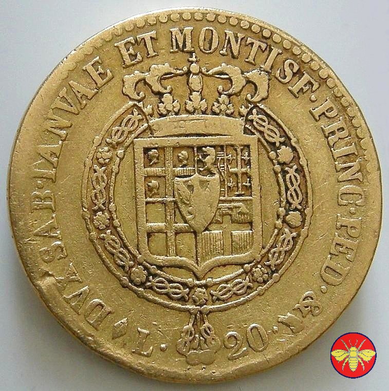 20 lire Marengo Carlo Felice (1828 - Torino) Diametro Mm. 21,15 peso Gr. 6,44 Proveniente da montatura Verso | Mon 29/03/10 - 22:47 | |||
