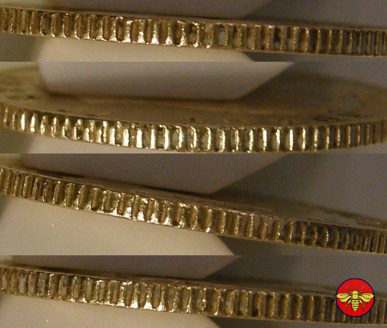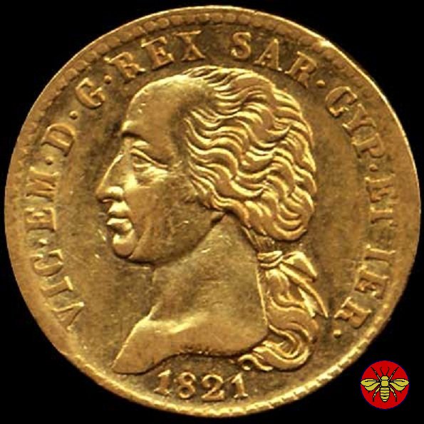 MONETA IN ORO TITOLO 750 MILLESIMI COLORAZIONE TENDENTE AL GIALLO CHIARO, PERLINATURA BASSA IN ALCUNI TRATTI SFUGGENTE E/O DISTANTE DAL CONTORNO, BORDO RIGATO LEGGERMENTE CONVESSO ALCUNI TRATTI DI BAFFI BARBA E CAPIGLIATURA RISULTANO CONCAVI ANZICHE' IN RILIEVO FIRMA IMPASTATA CARATTERI DELLA LEGENDA DIFFERENTI DALL'ORIGINALE LE FIGURE DEL MEDAGLIONE DELL'ANNUNZIATA NON SONO DEFINITE RIGATURA AL DI SOTTO DELLA CORONA APPENA SOPRA LO SCUDO ASSENTE PESO GR. 6,45; DIAMETRO MM 21,5; SPESSORE MM 1,5