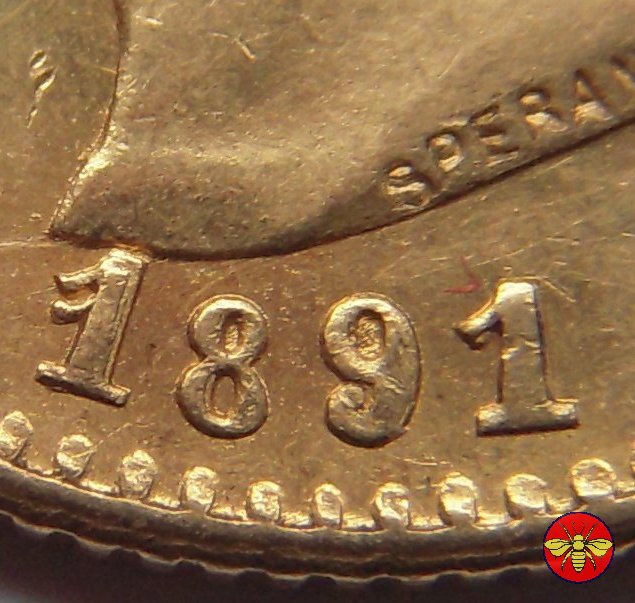 In questo esemplare si vedono (nei campi) un paio di mancanze di metallo potenzialmente imputabili a "saggi" per verificare l'autenticità del metallo.