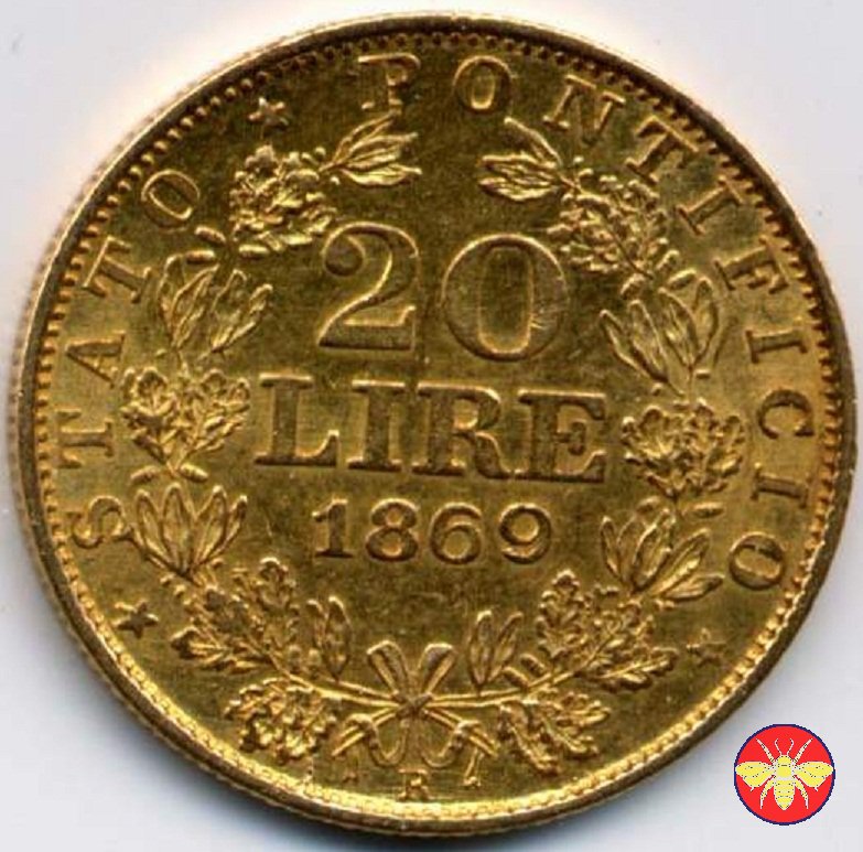1642 20 lire Pio IX 1866/1870 (1869 - Roma)
